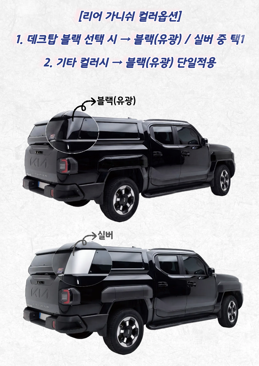 – 기타 컬러 차량시 블랙(유광) 단일 옵션 적용